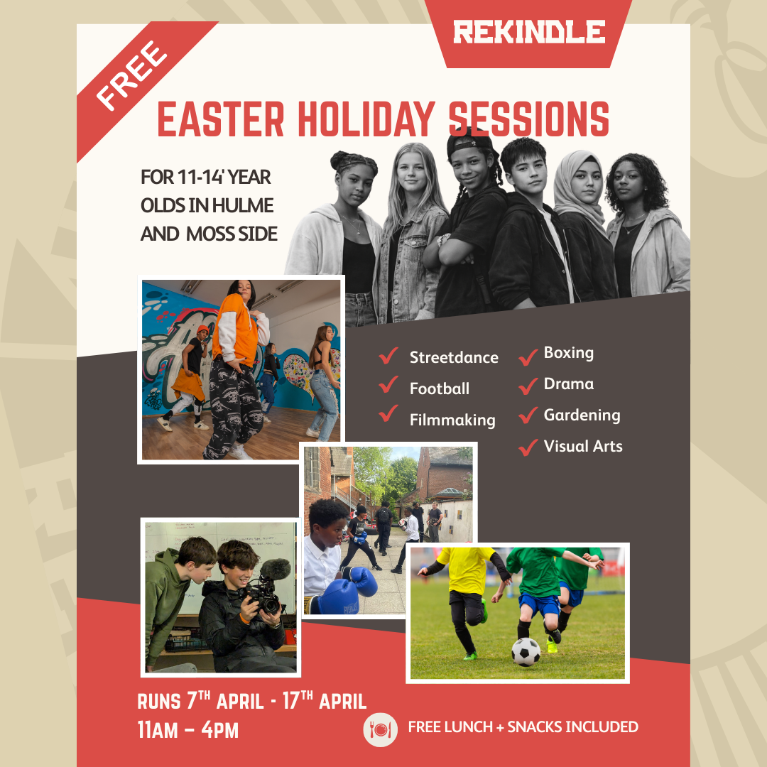 Rekindle Manchester is hosting two weeks of free holiday sessions for young people aged 11–14 from Hulme and Moss Side.