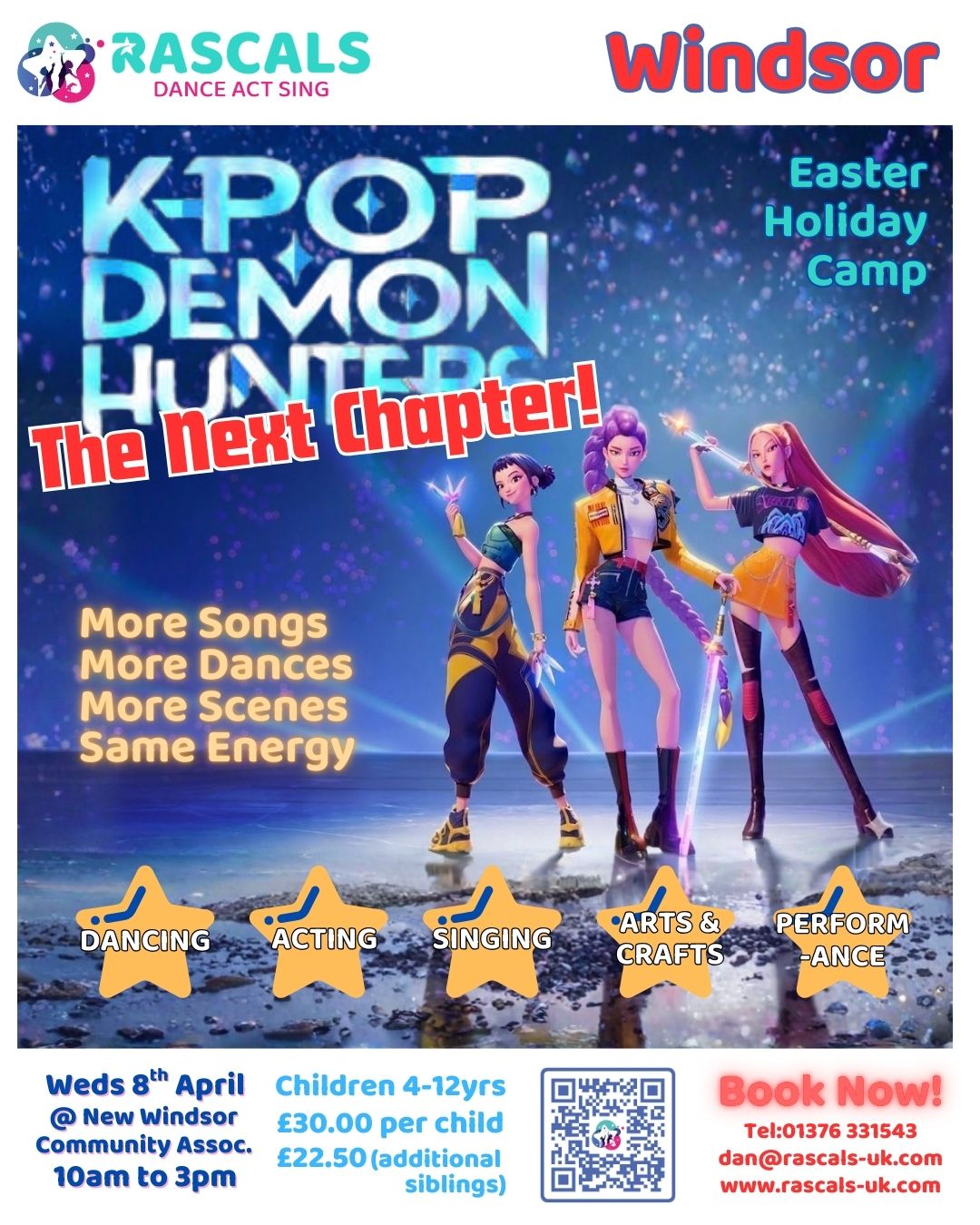 Come and step into the exciting world of ‘K-POP Demon Hunters – The Next Chapter’ and spend a fun-filled day singing, dancing, and acting! Children will learn brand-new songs, dance routines, and drama scenes inspired by the hit Netflix movie all with the same high-energy K-POP vibes they love.