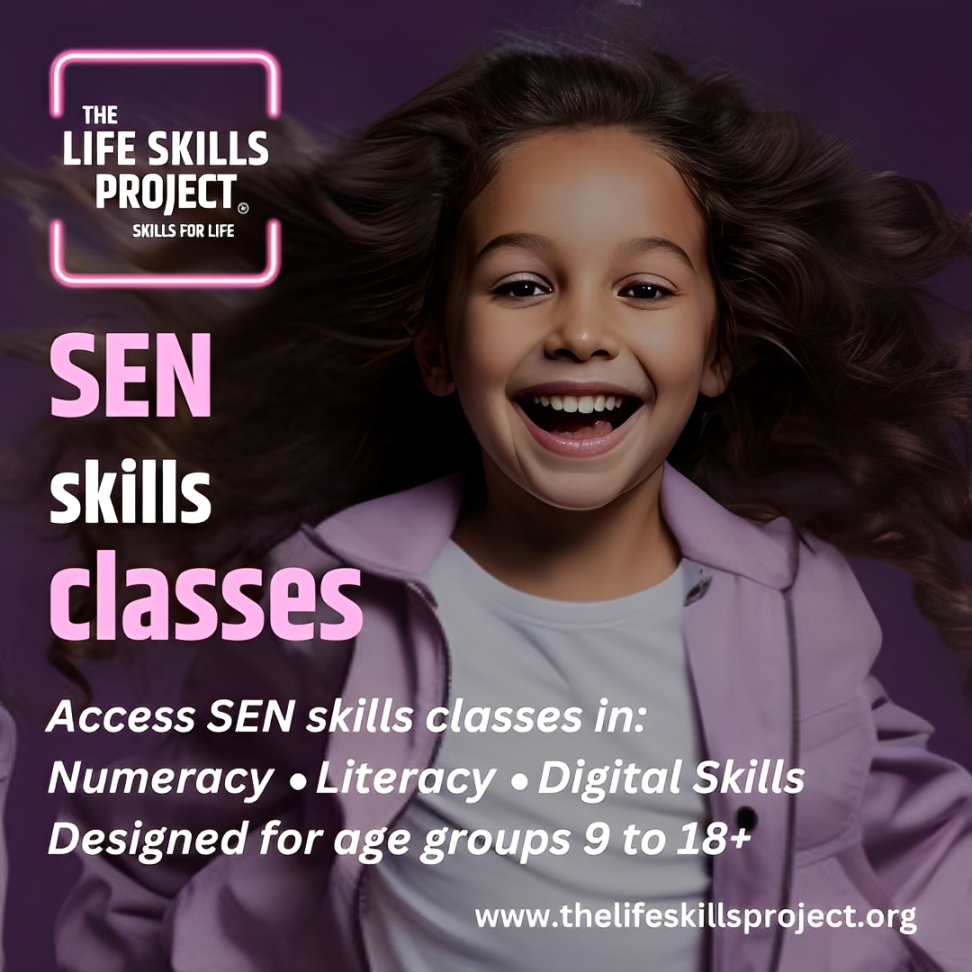The Life Skills Project SEN Skills Classes in numeracy, literacy & digital skills at The Life Skills Project are designed for children & adults with SEN & additional needs. Taught by qualified SEN teachers & experienced support assistants, sessions combine academic support with important life skills.
