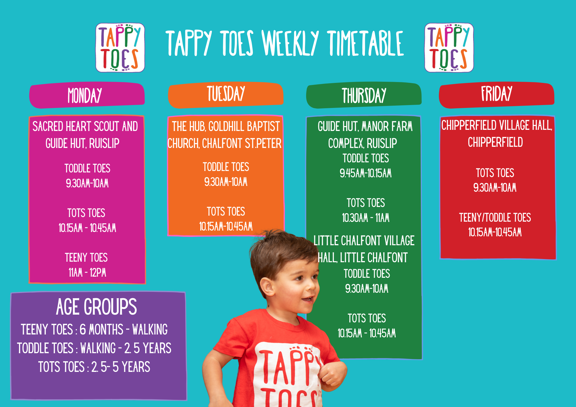 Times: 9.30am- Tots Toes, 10.15am- mixed Teeny/Toddle Toes