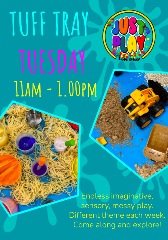 Join us Tuesdays for Tuff tray fun! This is a Free activity included in soft play entry. Two tuff tray activities , messy play, crafts and colouring all linked to our weekly theme.